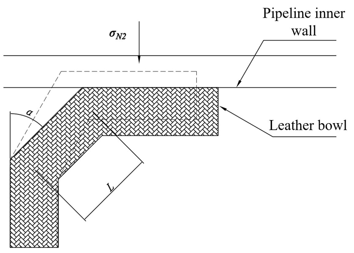where δ is the deformation of the sealing cup under compressive force, D is the inner diameter of the pipe wall, E is the elastic modulus of the cup material, t is the thickness of the sealing cup, and σN1 is the compressive stress on the sealing cup.