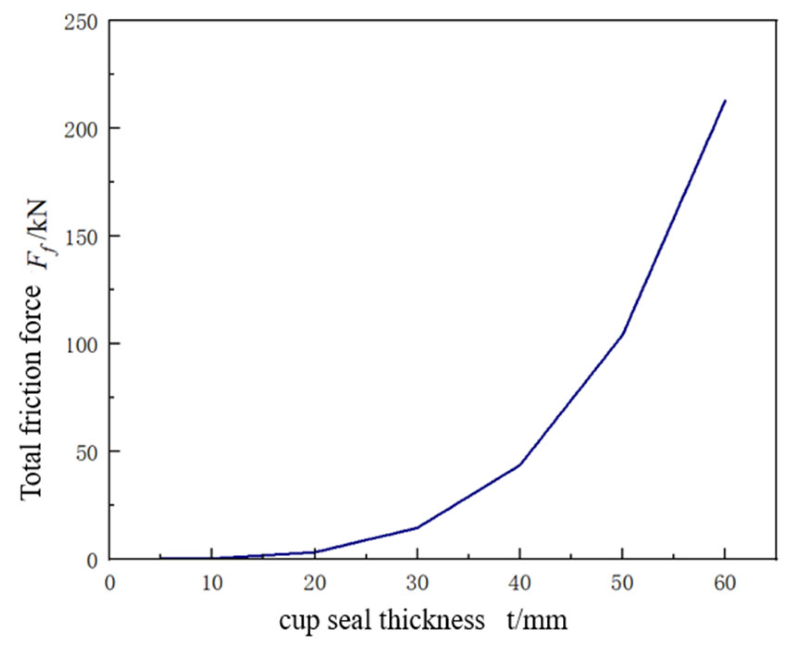 Figure 14. Relationship between sealing cup thickness t and total frictional force.
