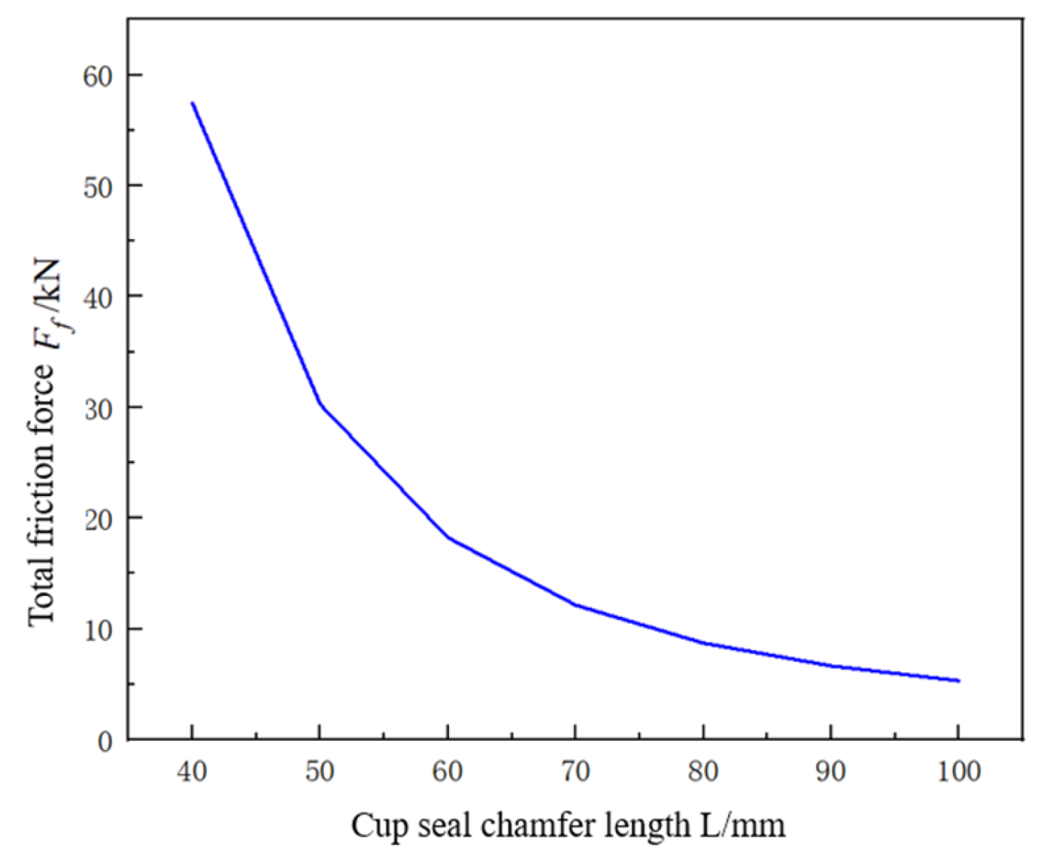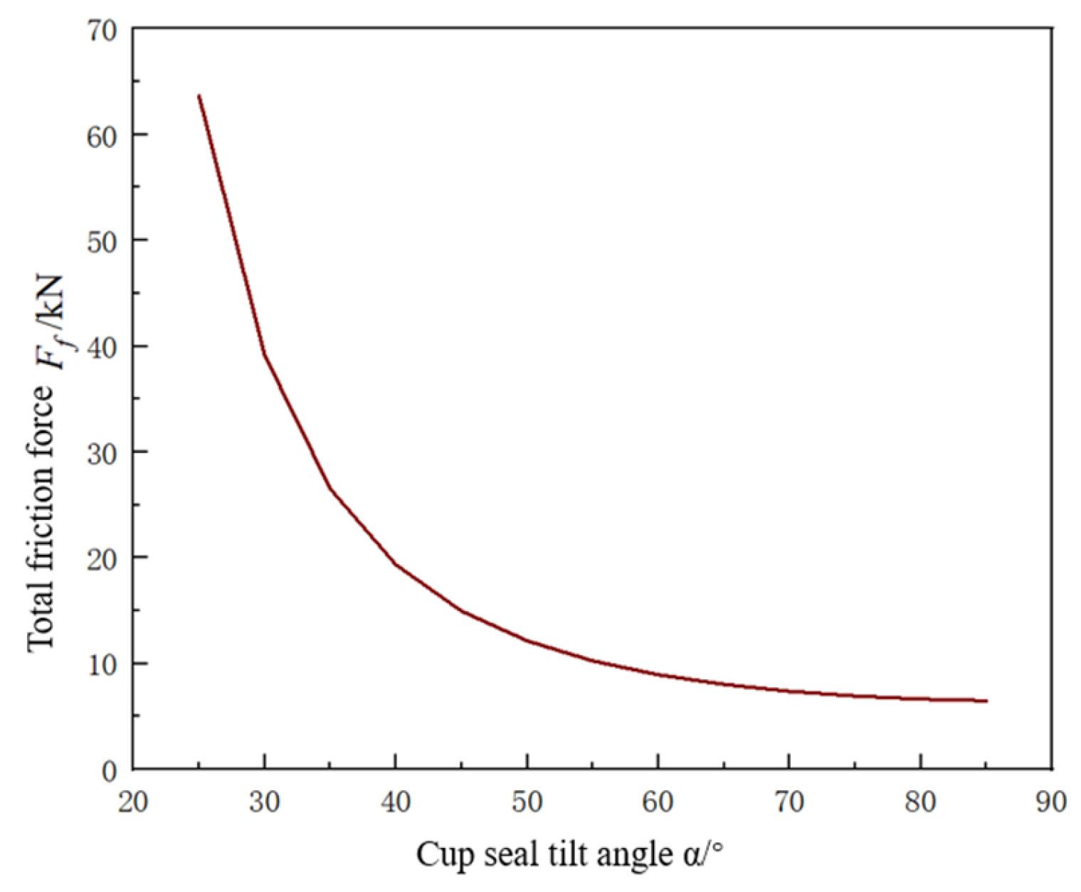 Figure 15. Relationship between sealing cup inclination angle and total frictional force.