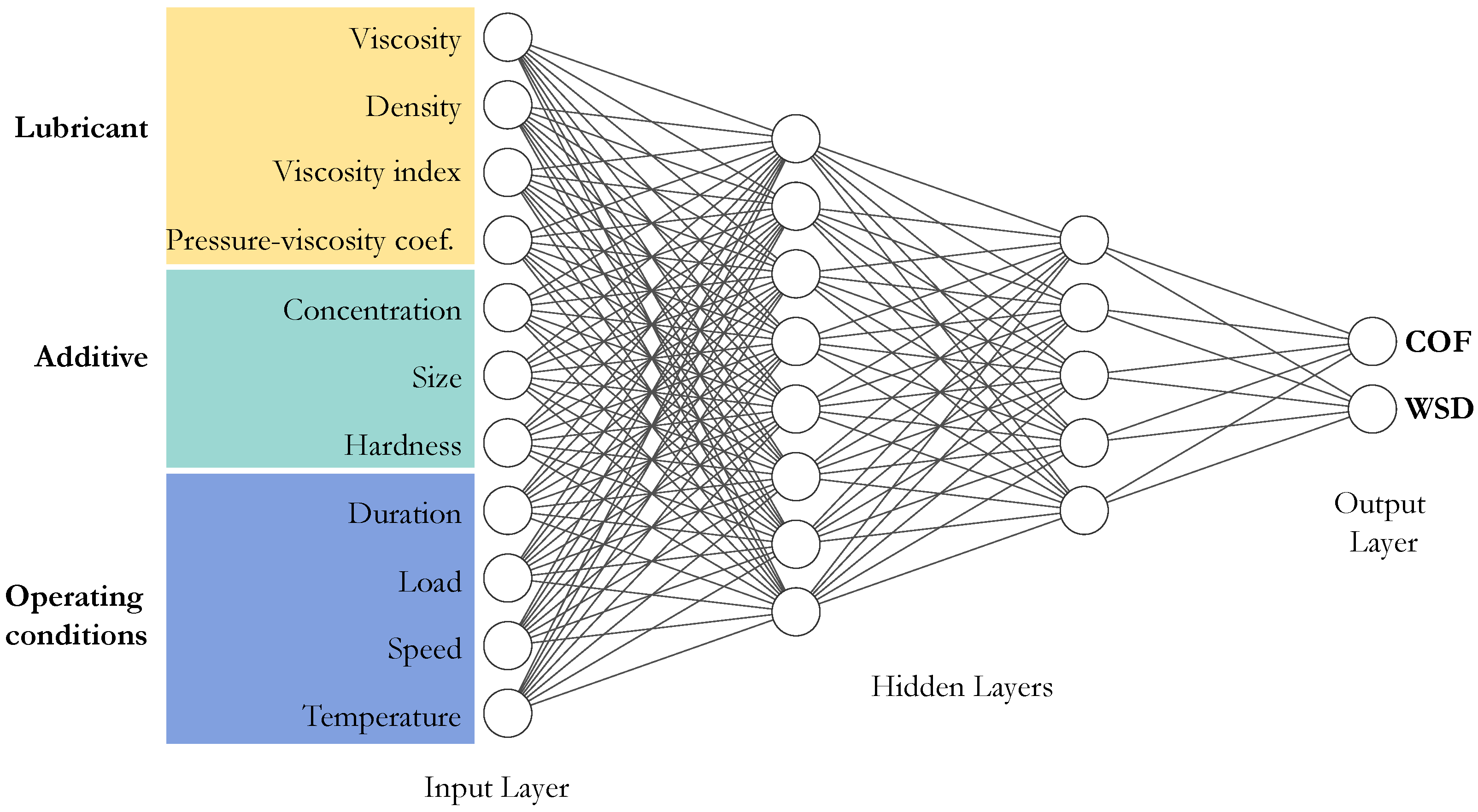 Neural Network Architecture for Predicting COF and WSD in Lubricated Four-Ball Tribo-Tests.