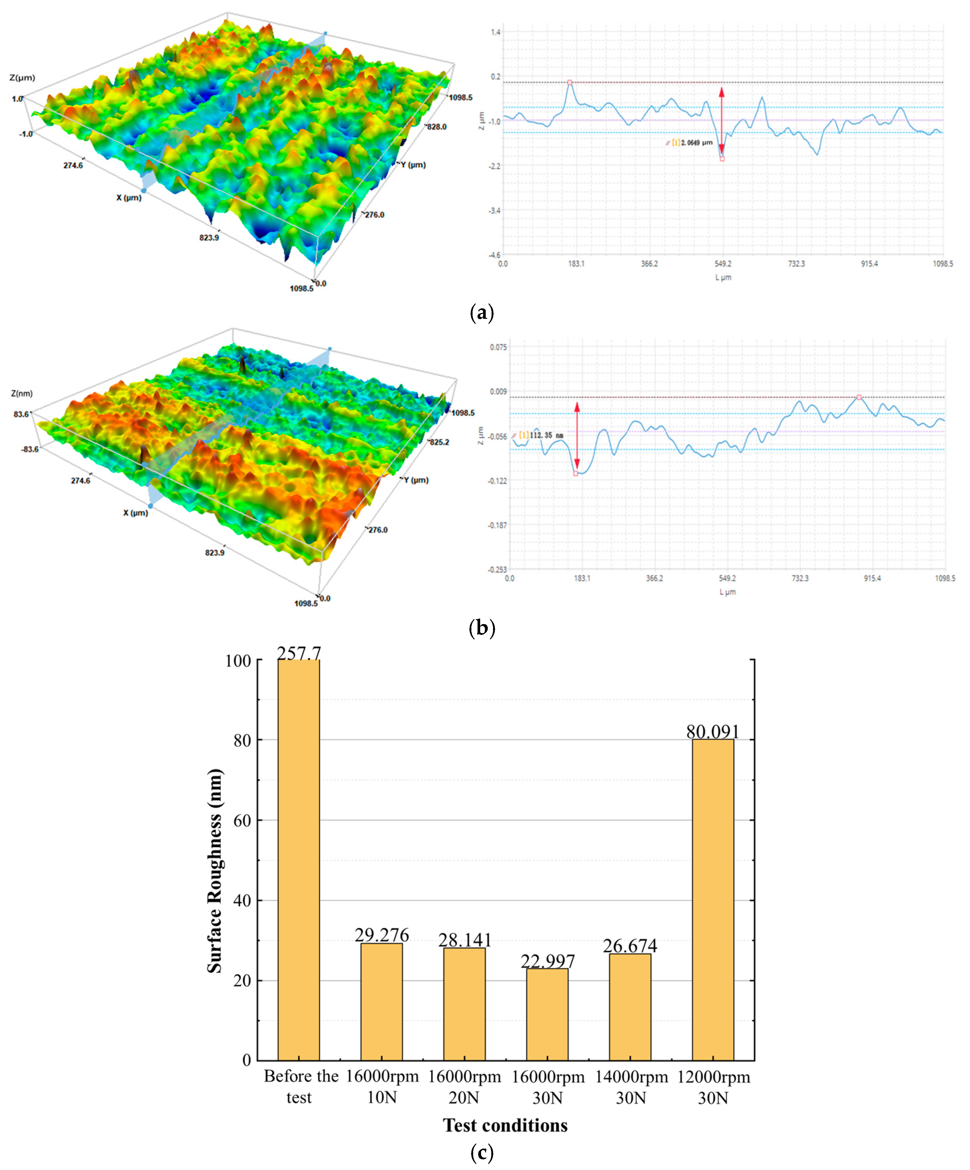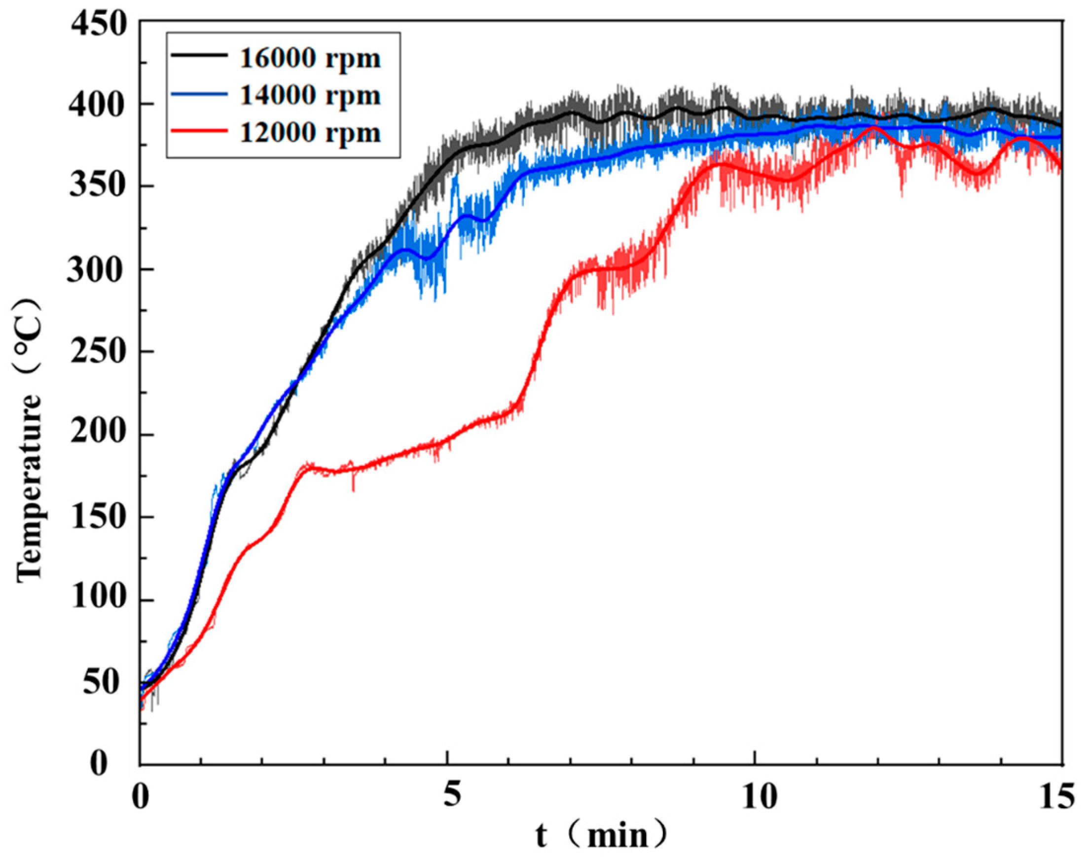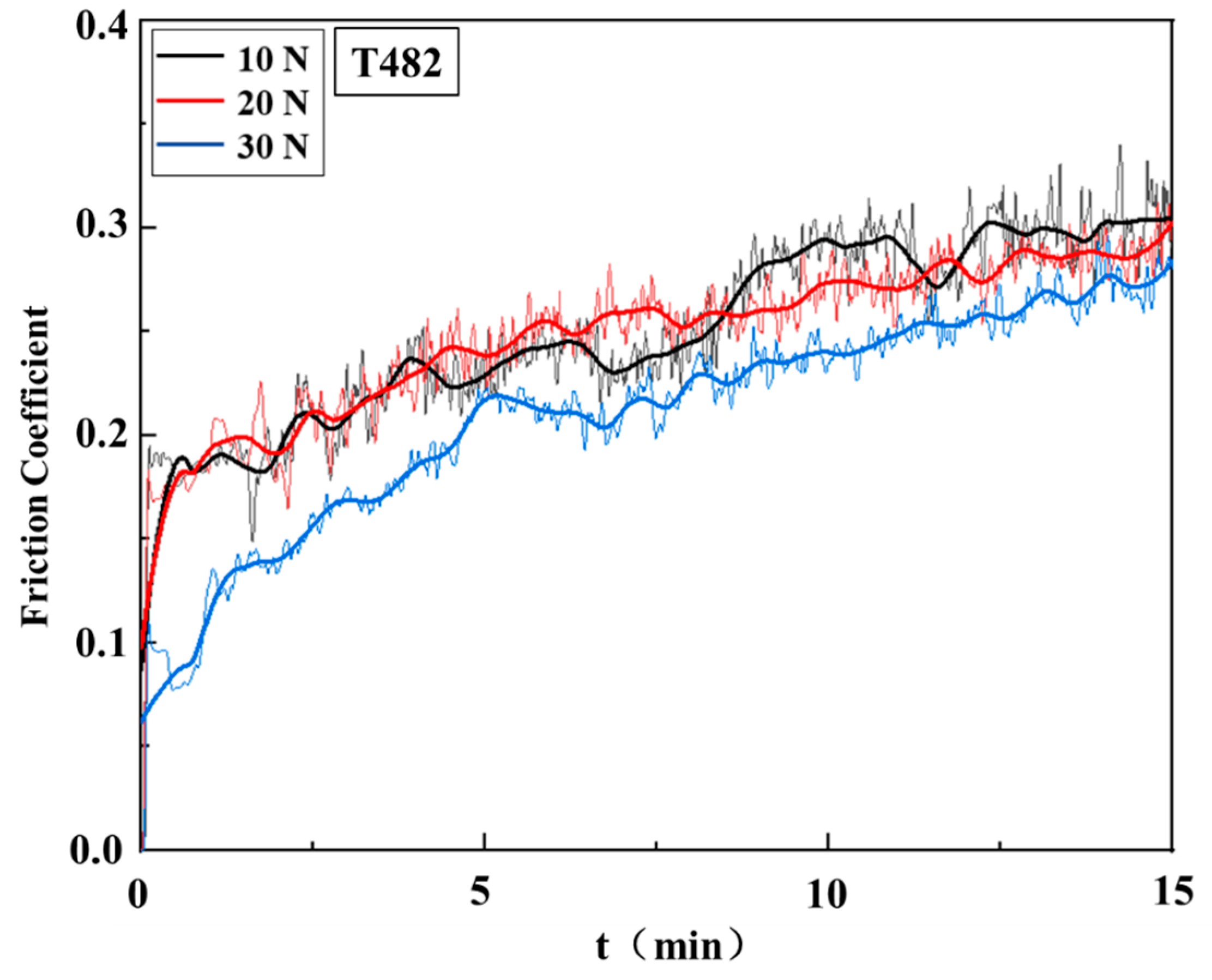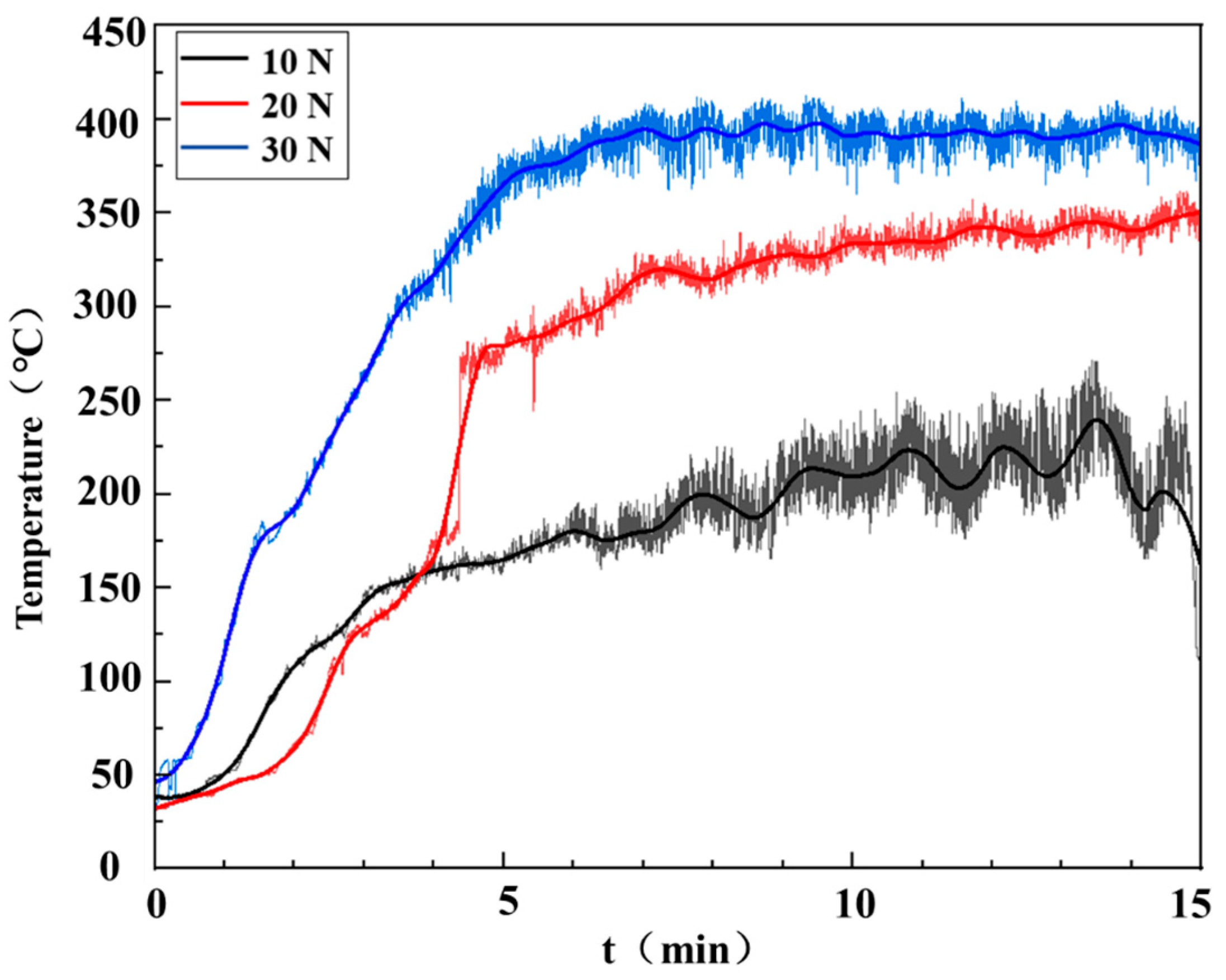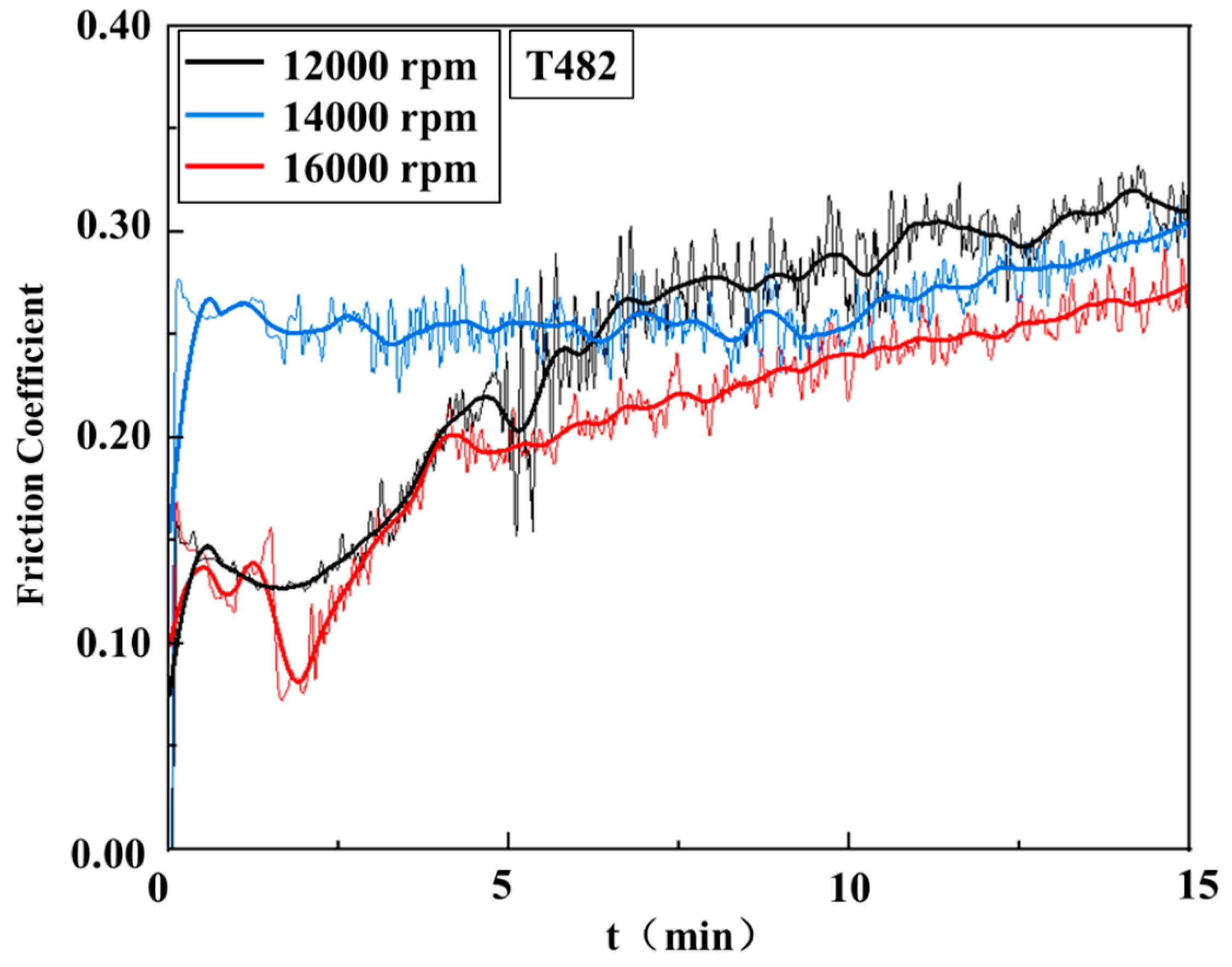 7] conducted high-temperature friction and wear experiments on graphite M210 sealing materials and found that the coefficient of friction first increased, then decreased, and finally stabilized with the rise in temperature, reaching the lowest point at 450 °C. The wear rate continued to rise, and a friction and wear performance prediction model was established based on the grey theory. Ma et al. [