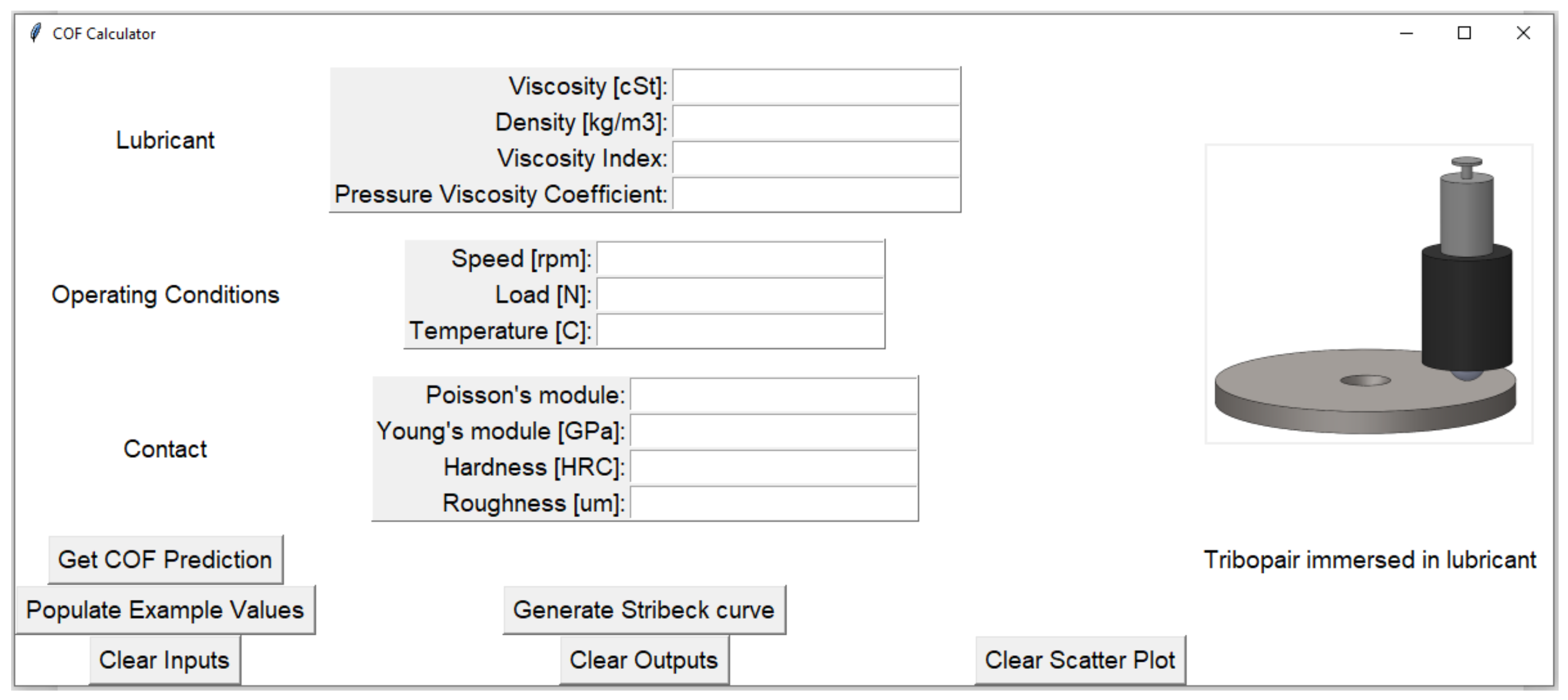 - Average angular speed of the ball-on-disk contact (): 1–2750 [rpm].