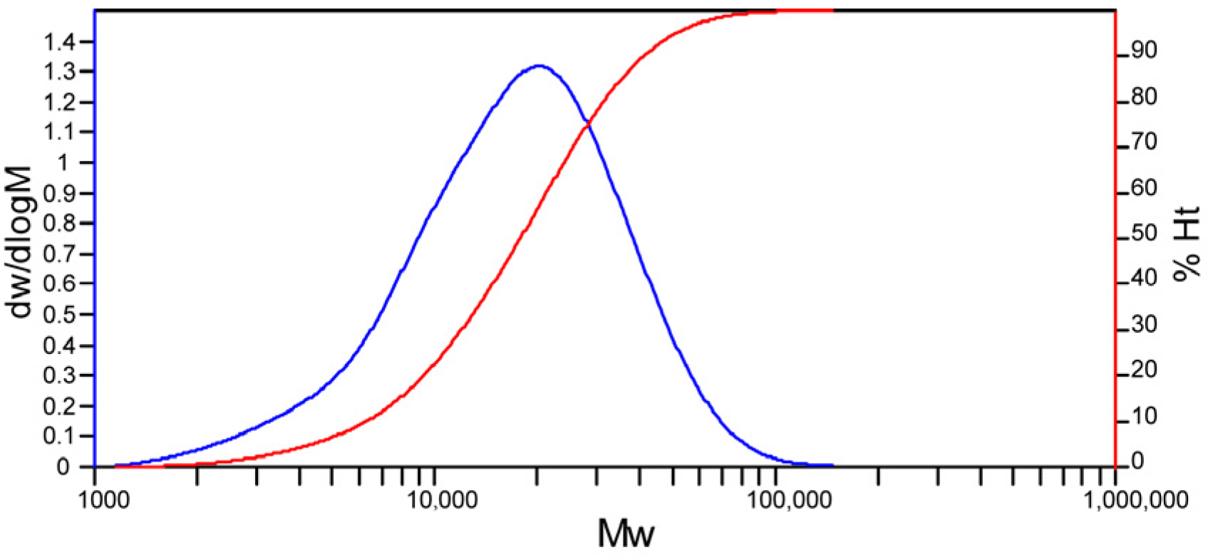 Firstly, GPC characterization was employed to determine the molecular weight and molecular weight distribution of PMA. In addition to the PMA component, solvent oil information was also observed. The distribution plot of PMA-2 main component is shown in