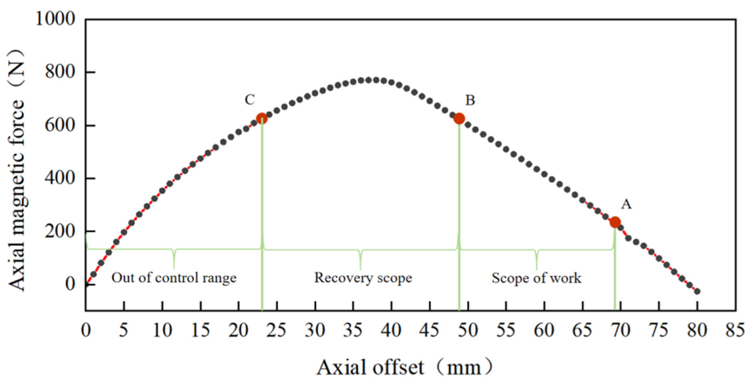 Relationship between axial magnetic force and axial offset in the magnetic ring group in a Halbach array stacked structure.