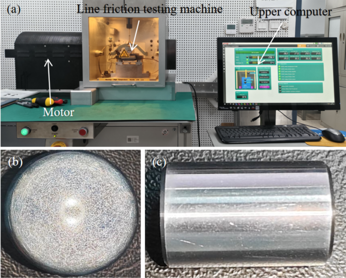 While simulations verify the bearing’s unloading and thermal suppression capabilities, the real contact tribological behavior of the permanent magnet material requires experimental validation. To this end, linear contact fretting tests were conducted [