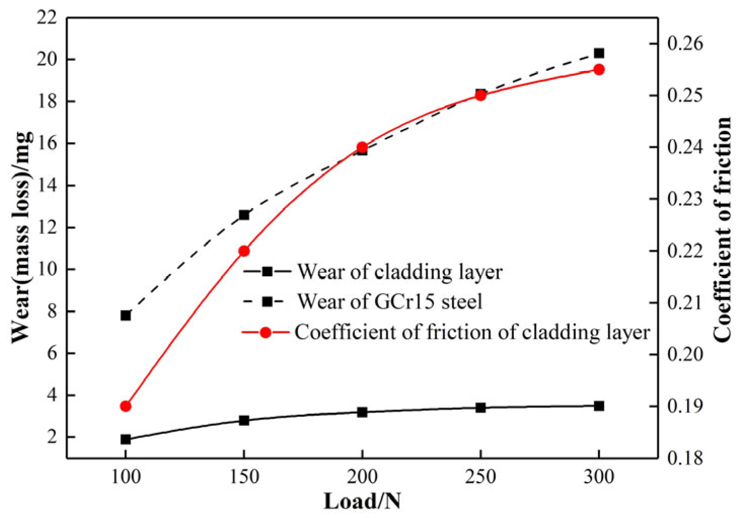 Table 6. Mass loss of the cladding layer and GCr15 steel at different loads.