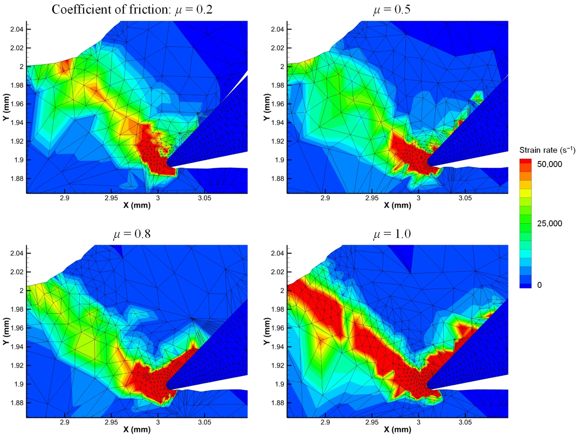 - FEA revealed that the strain-rate variations in the shear zone and on the tool rake face influence the AE waves generated during cutting.