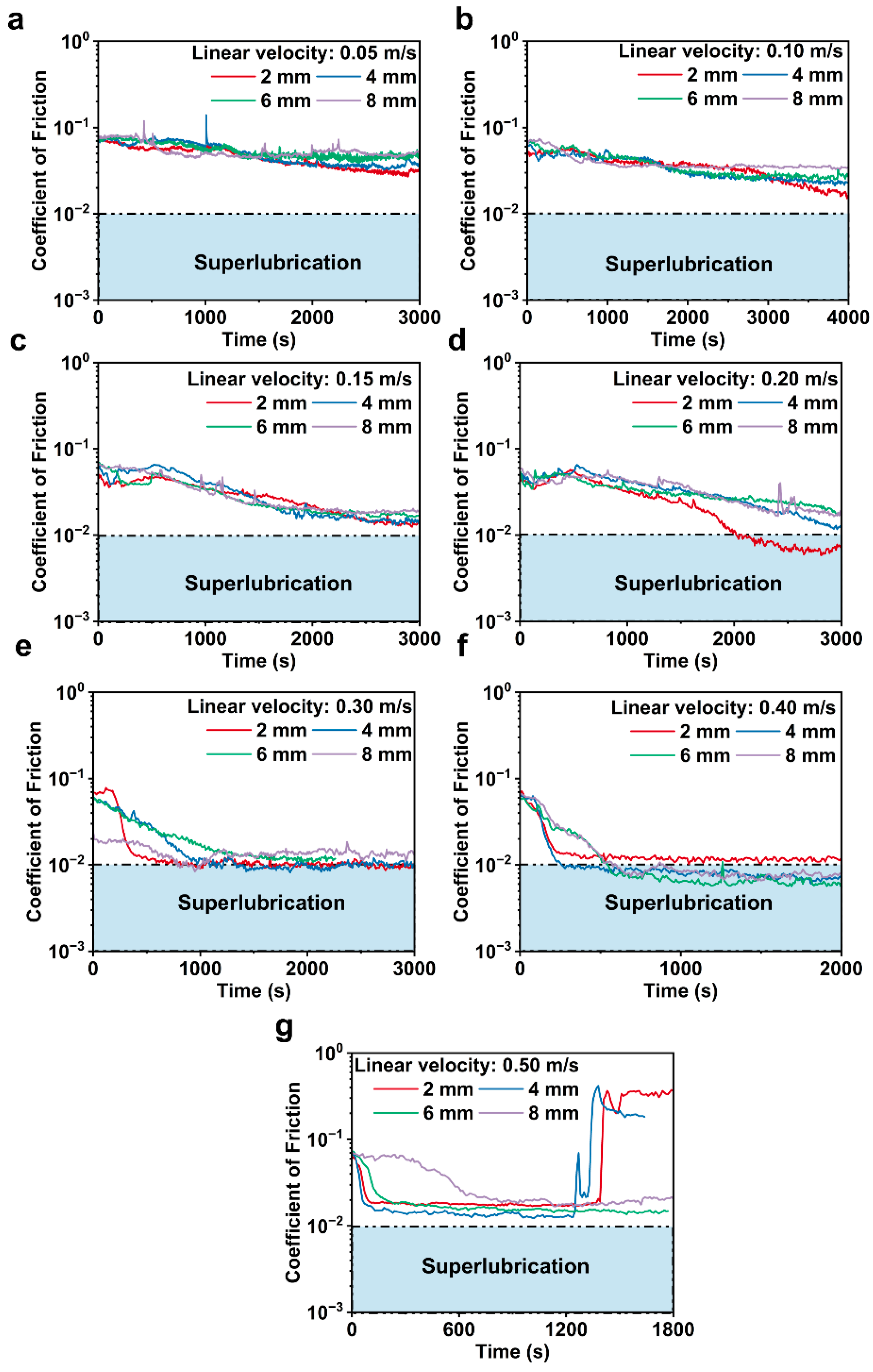 | 0.40 m/s-8 mm | 25 | 5 | 11.573 | Hydrodynamic lubrication | 6 |