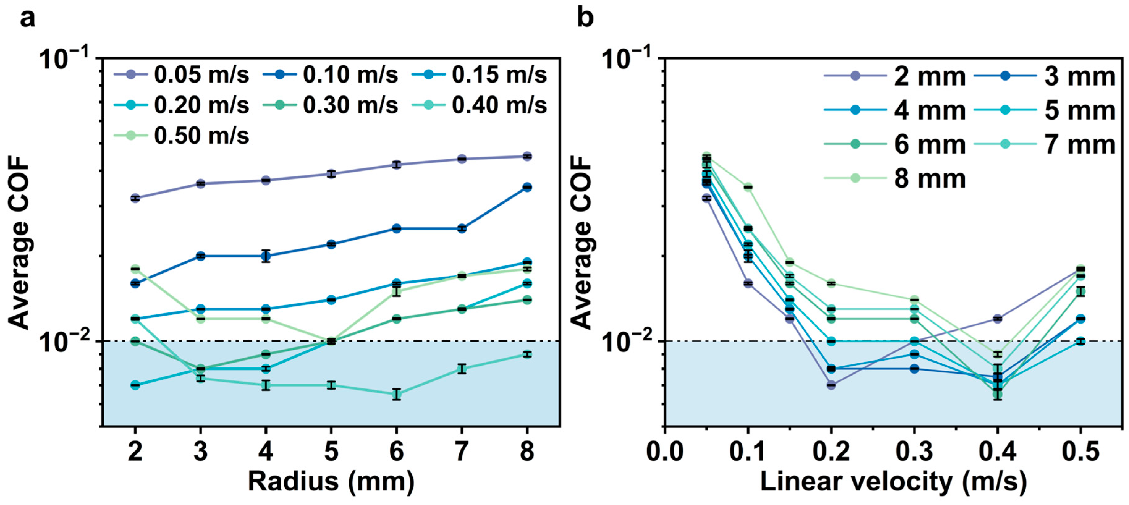 | Additives | Base Medium | Velocity (m/s) | COFmin | Radius (mm) | Ref. |