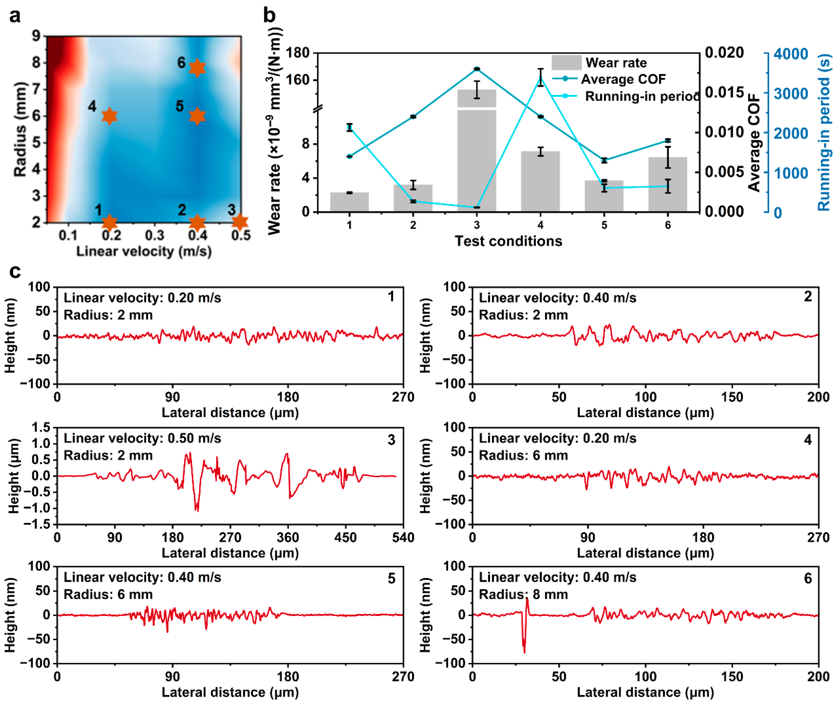 | 0.40 m/s-6 mm | 32 | 4 | 7.248 | Hydrodynamic lubrication | 5 |