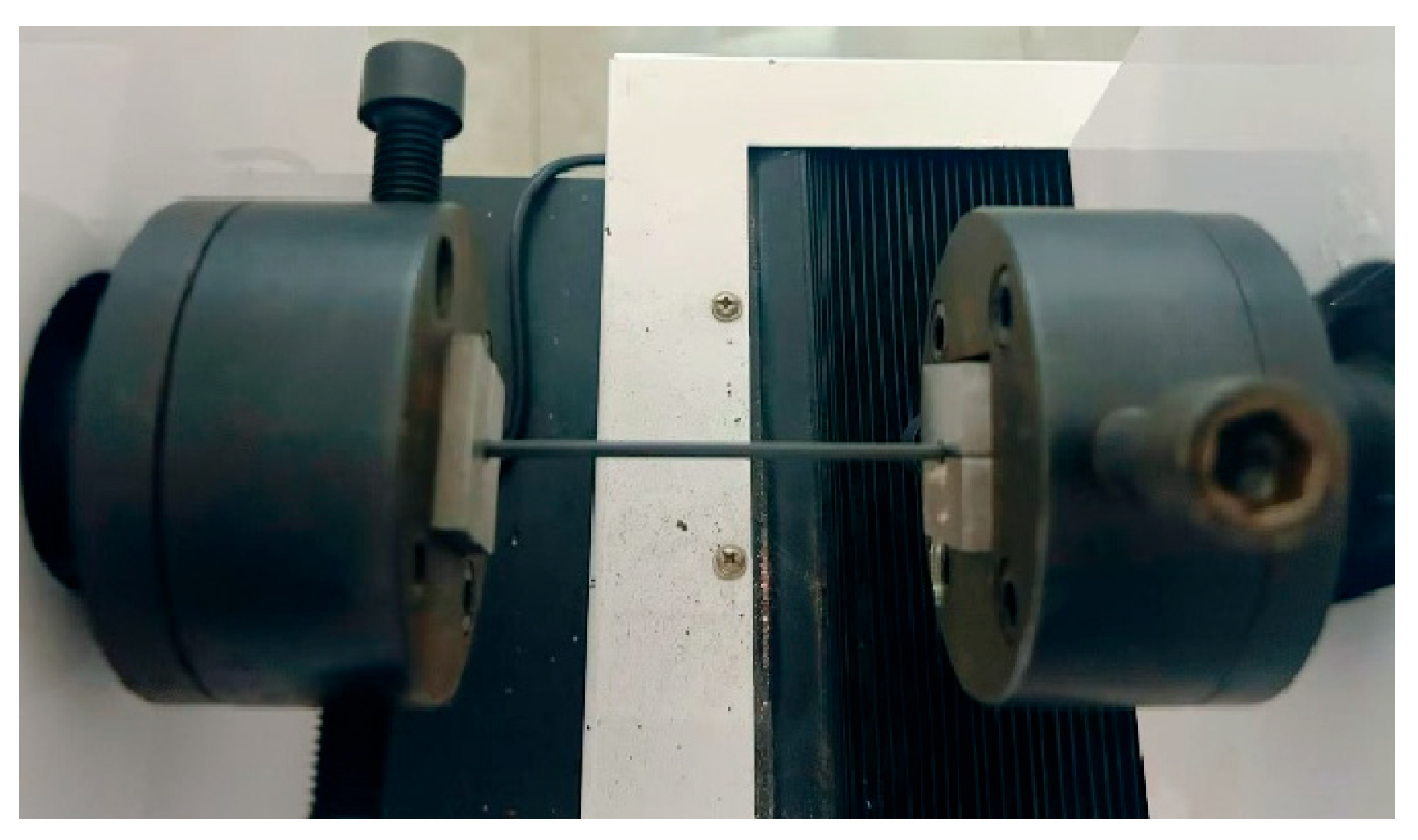36]. To verify the basic mechanical properties of the SiC material, a static tensile test was performed on the specimen, with the experimental setup illustrated in