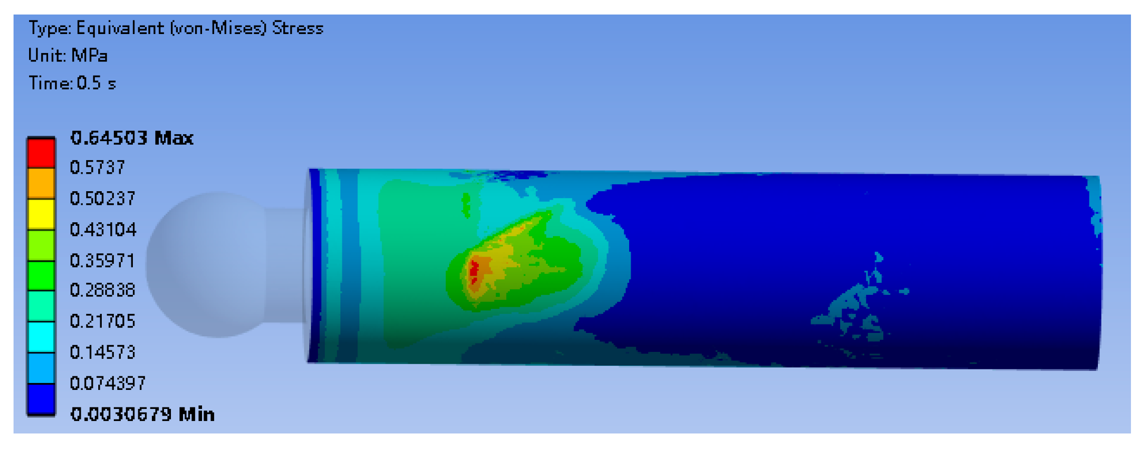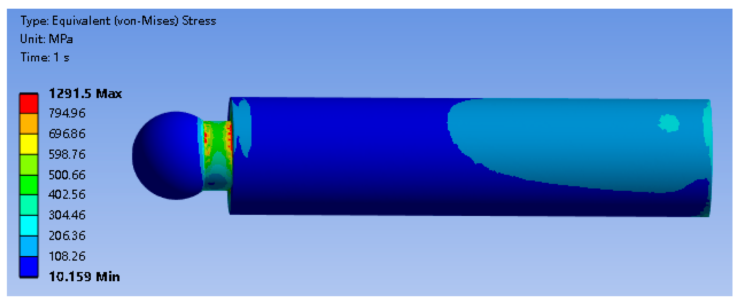 The equivalent stress distribution of the plunger is presented in