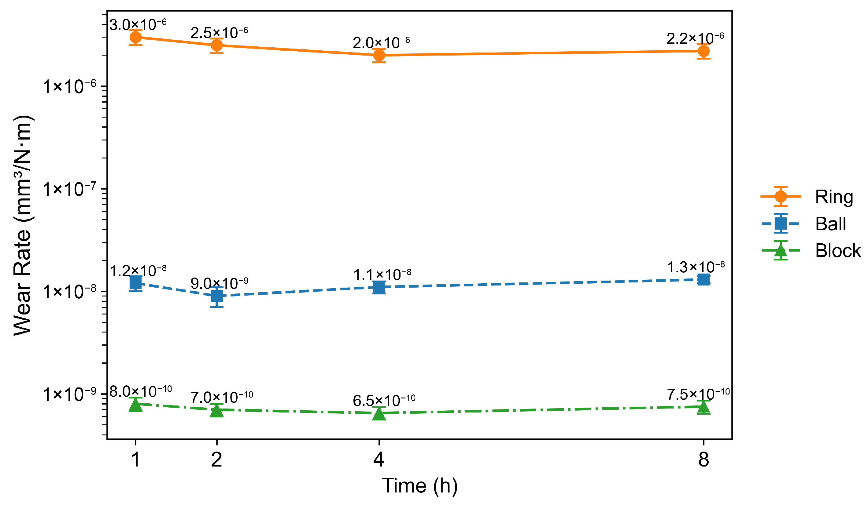 3.1. Coefficient of Friction and Wear Rate