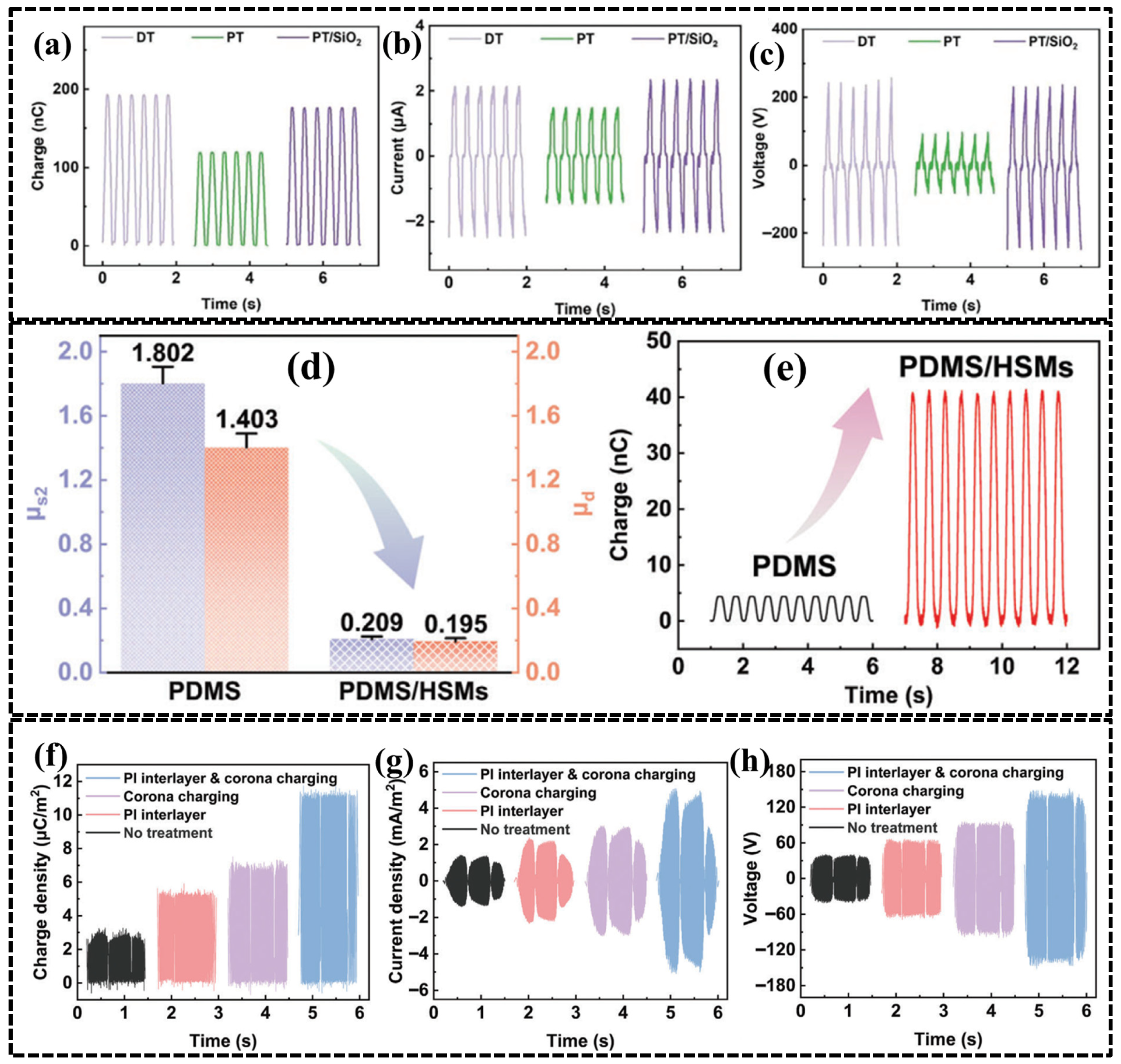 - Menge, H.G.; Kim, J.O.; Park, Y.T. Enhanced triboelectric performance of modified pdms nanocomposite multilayered nanogenerators. Materials 2020, 13, 4156. [Google Scholar] [CrossRef]