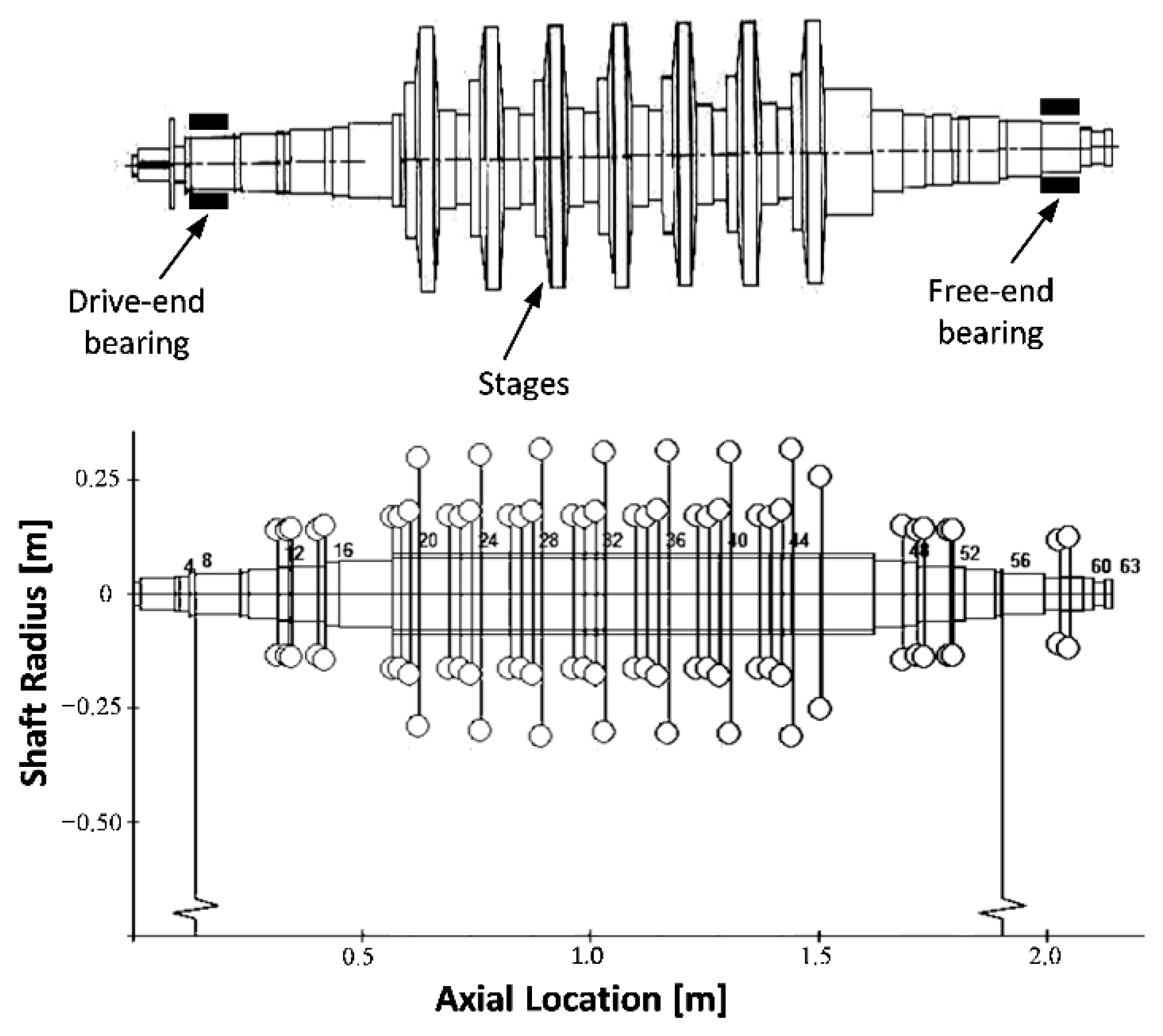 - Crease, A.B. Field Experience and Correction of a Fractional Frequency Vibration Problem On a High Speed Centrifugal Compressor. In Proceedings of the 10th Turbomachinery Symposium, Dallas, TX, USA, 15 October 1981; pp. 47–54. Available online: https://oaktrust.library.tamu.edu/server/api/core/bitstreams/ba69189e-8109-4ab7-9cfb-97115688678f/content (accessed on 7 January 2026).
