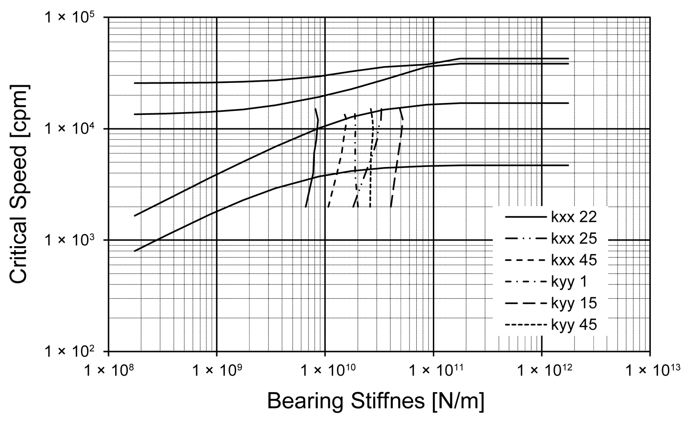 - Murphy, B.T. XLHydrodynTM Spreadsheets for Rotordynamic Analysis; Version 5.53; Rotating Machinery Analysis: Brevard, NC, USA, 2018. [Google Scholar]