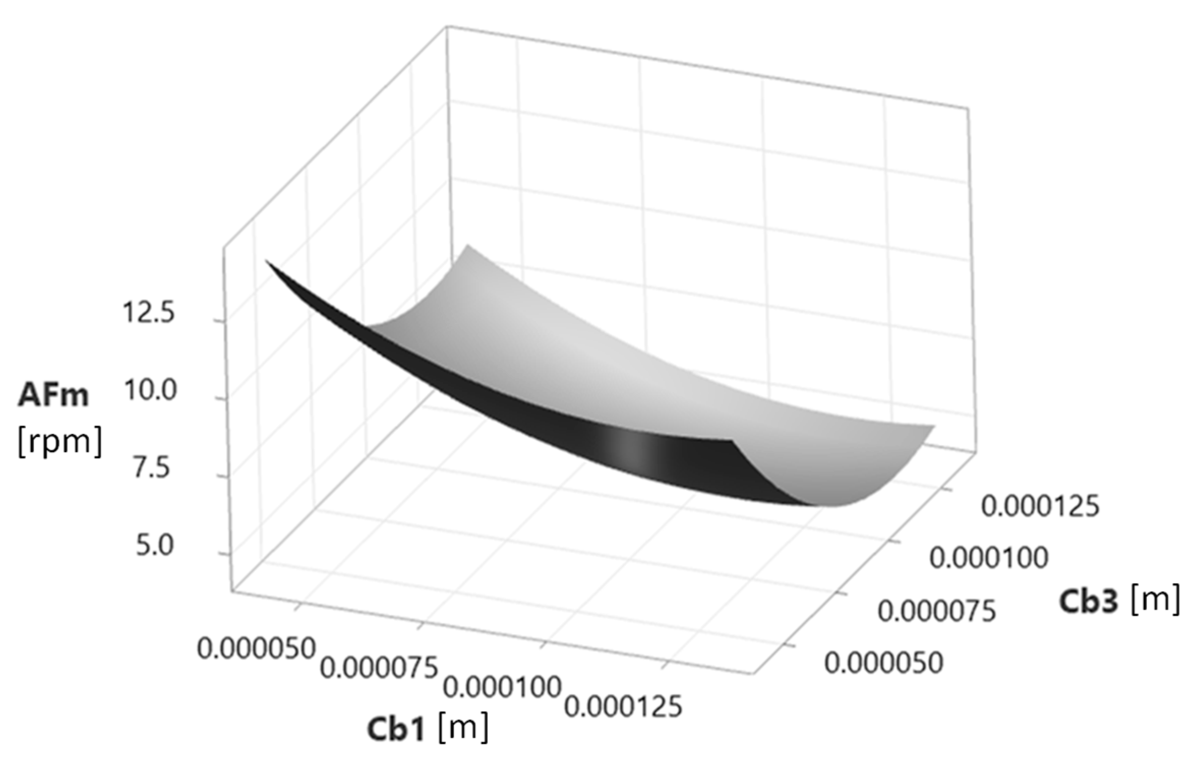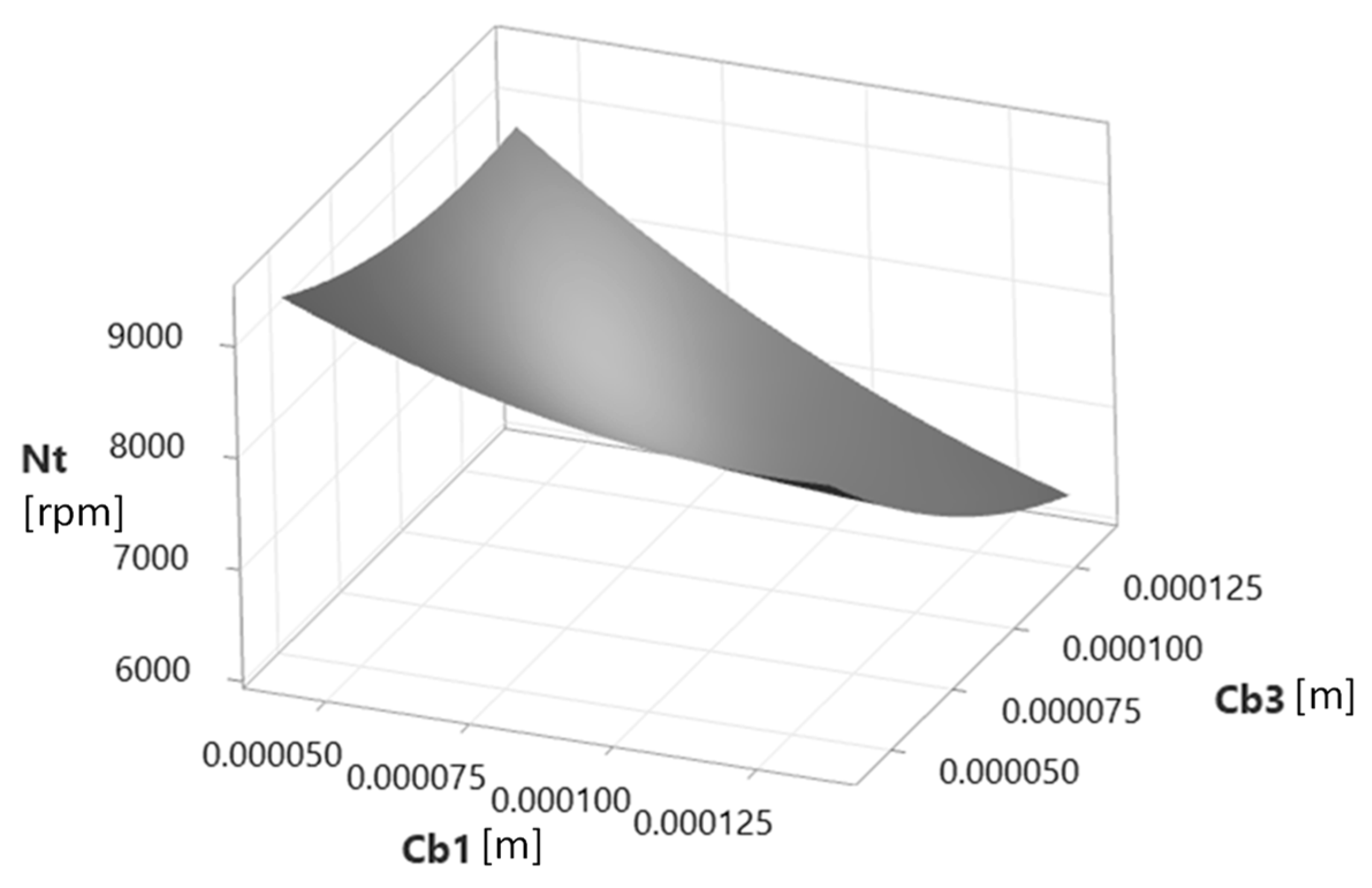 | Nt [rpm] | 1 | −1 | −1 | −1 | 1 | −1 | 0.95 | 6758 | 6800 | 0.6 | 18 |