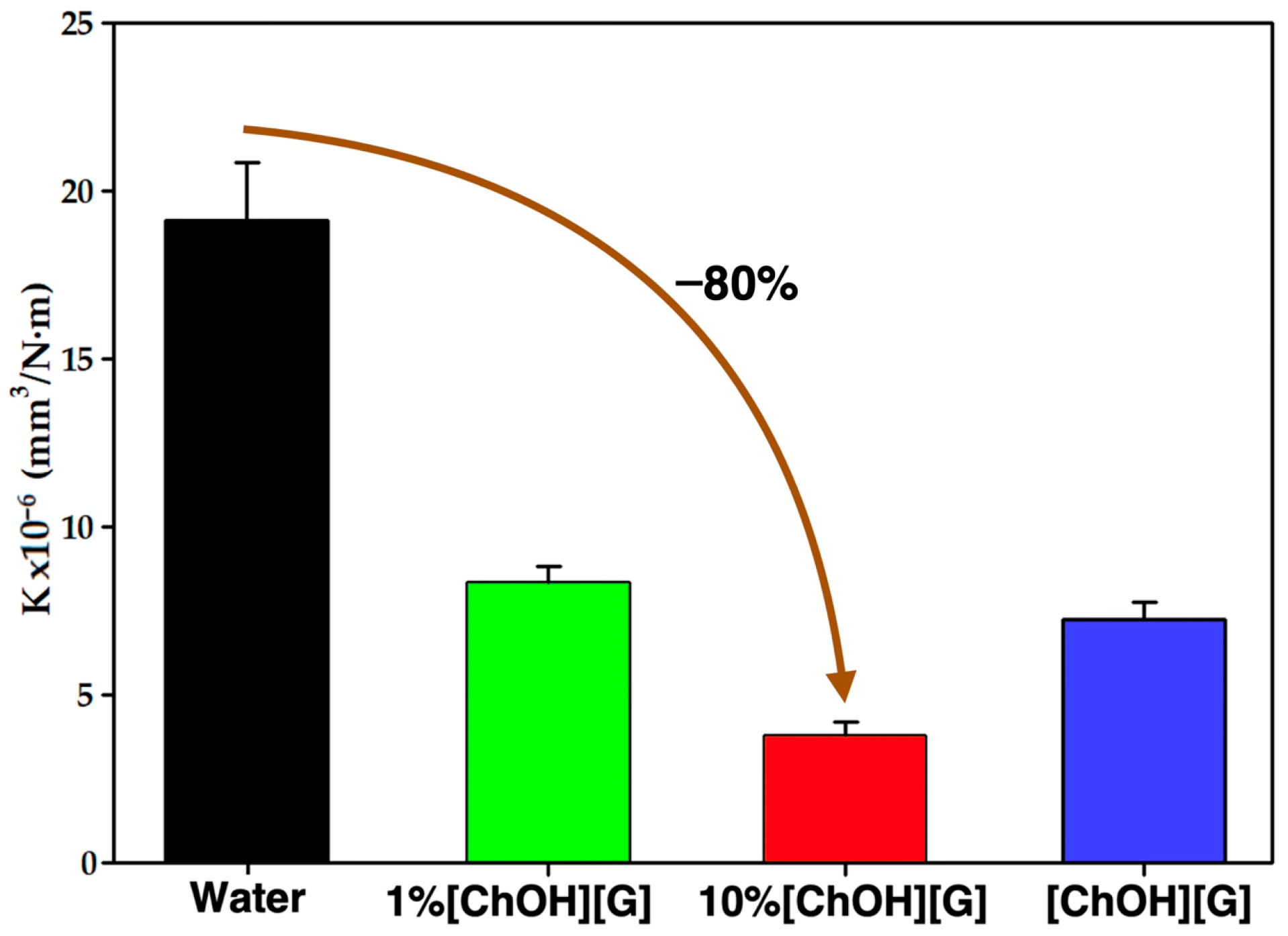 | 10% [ChOH][G] | 0.234 (±0.013) | 3.80 (±0.40) |