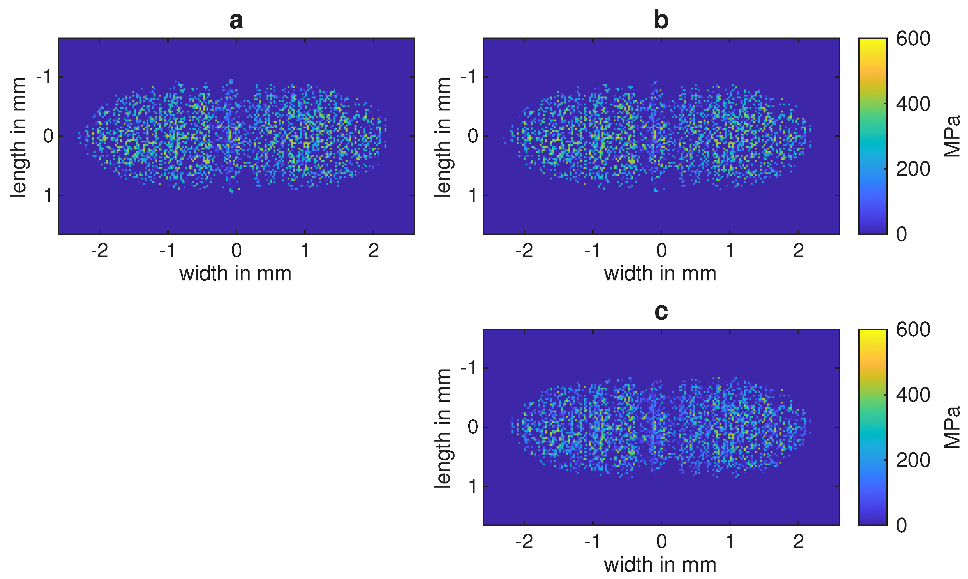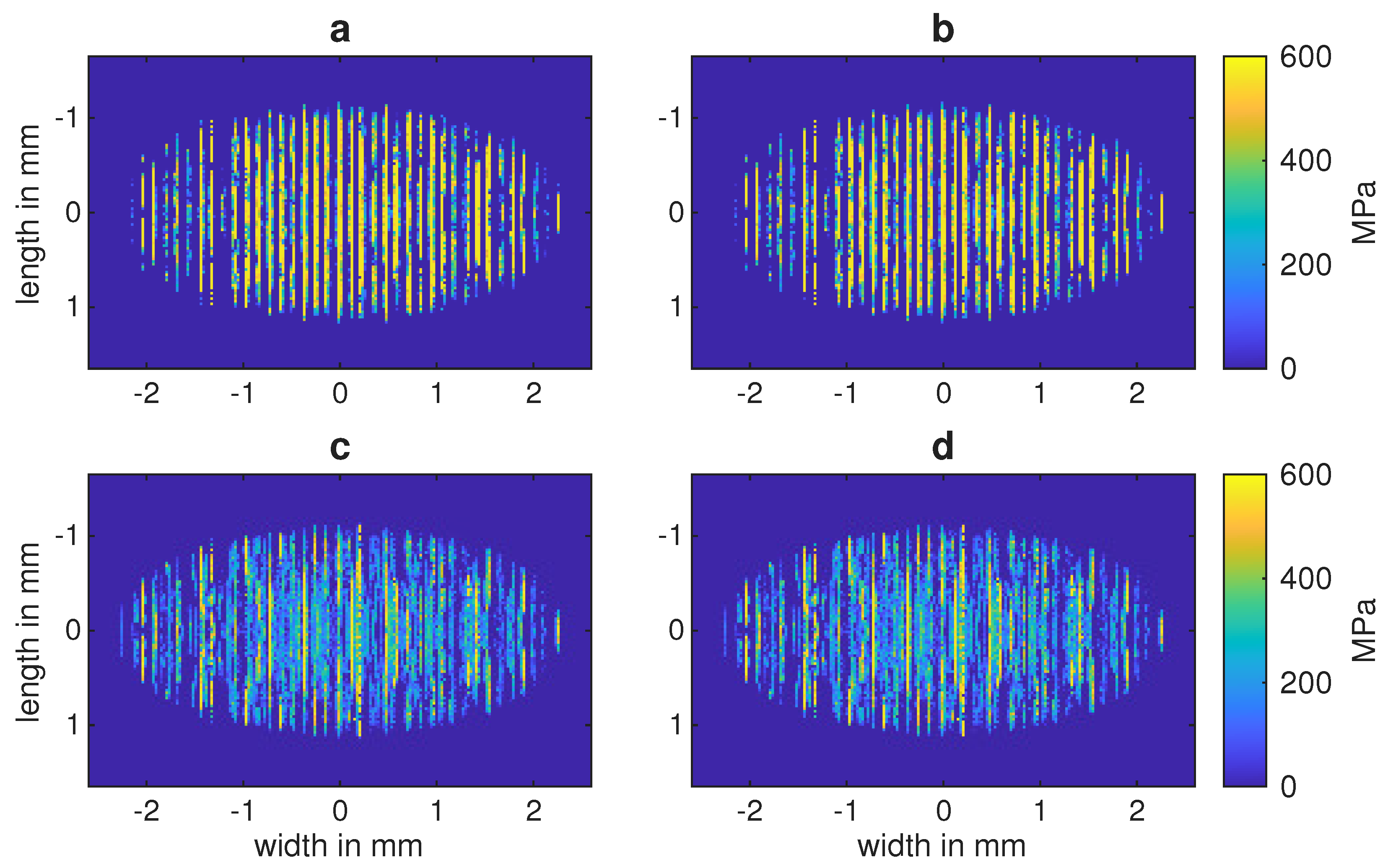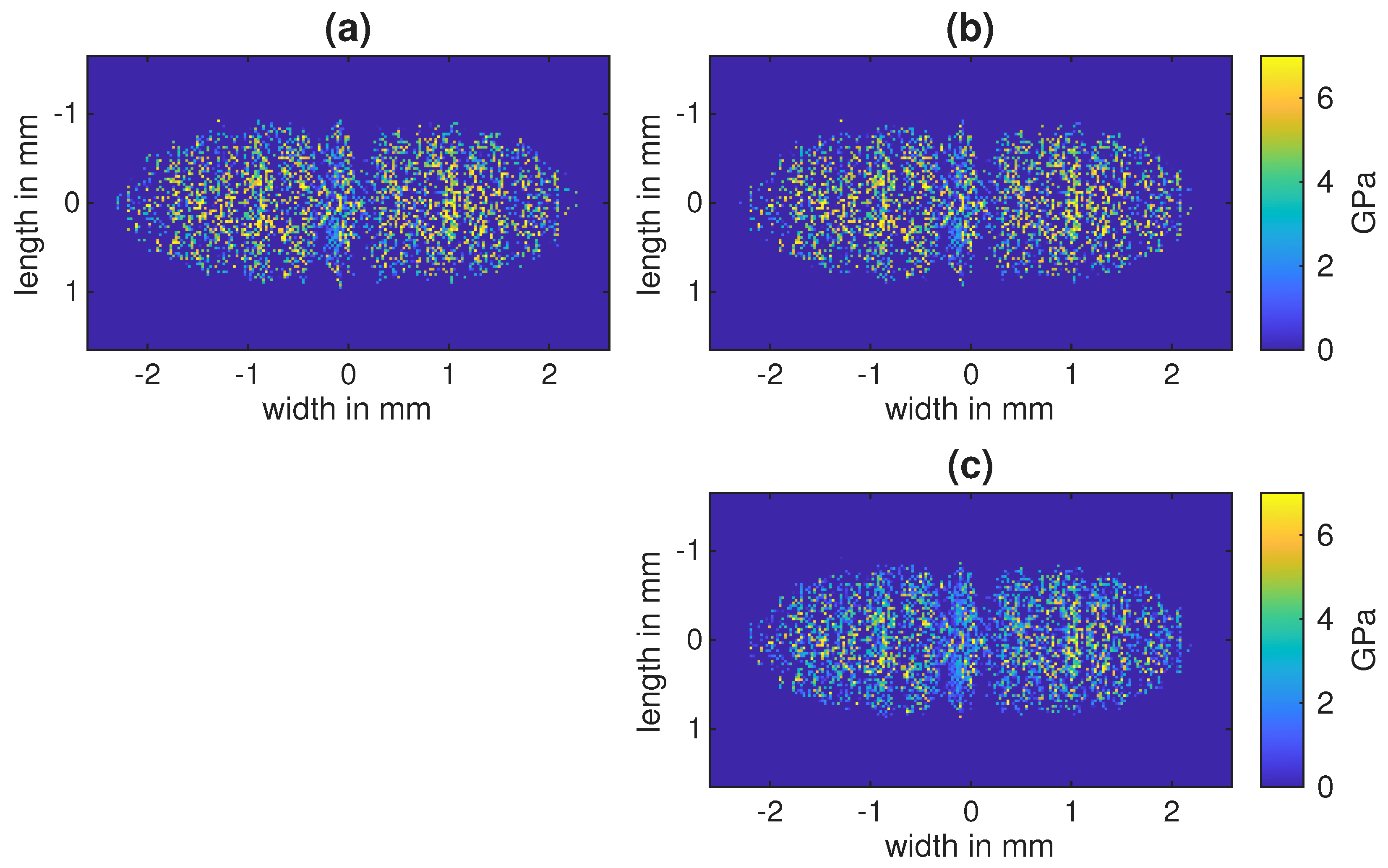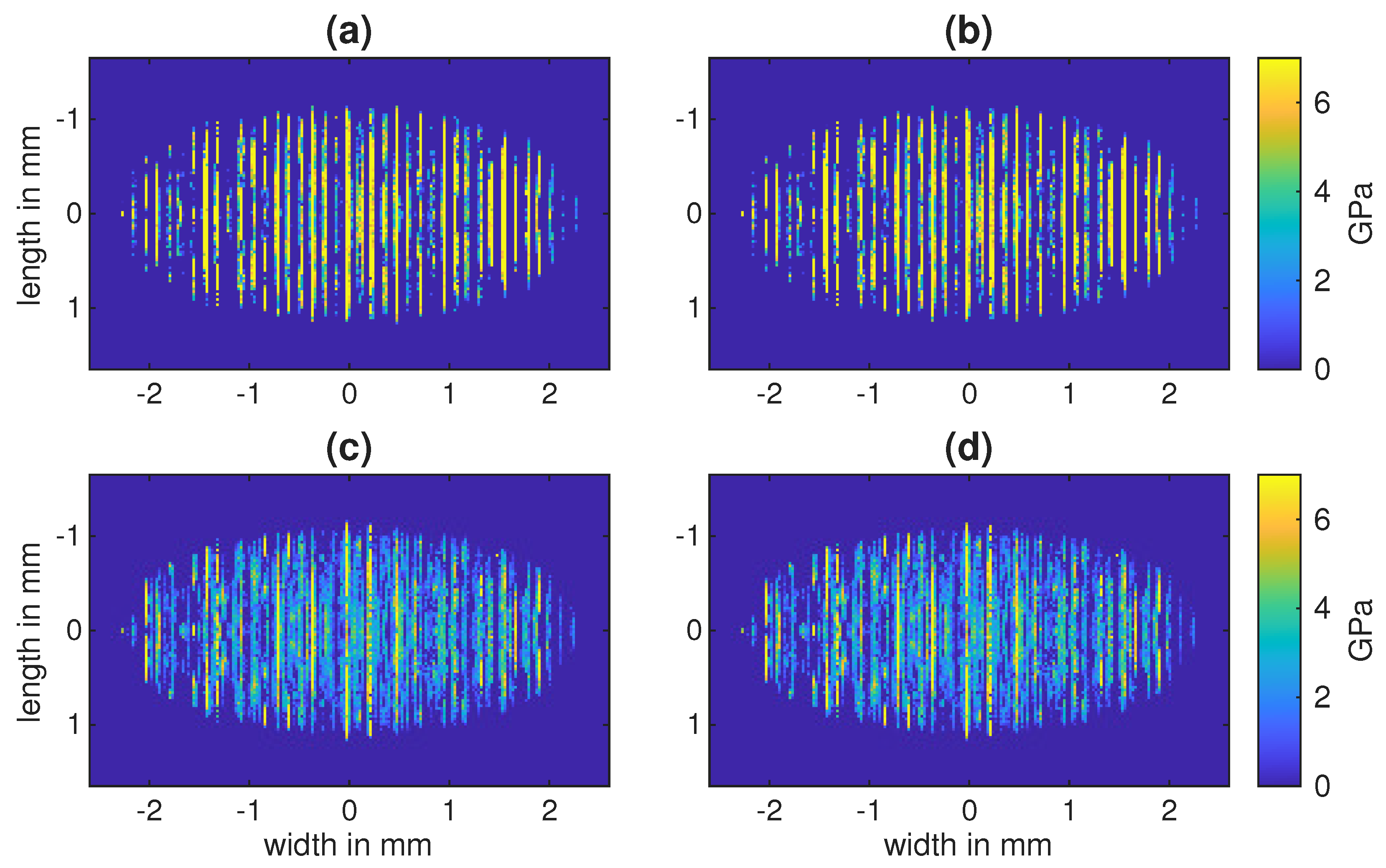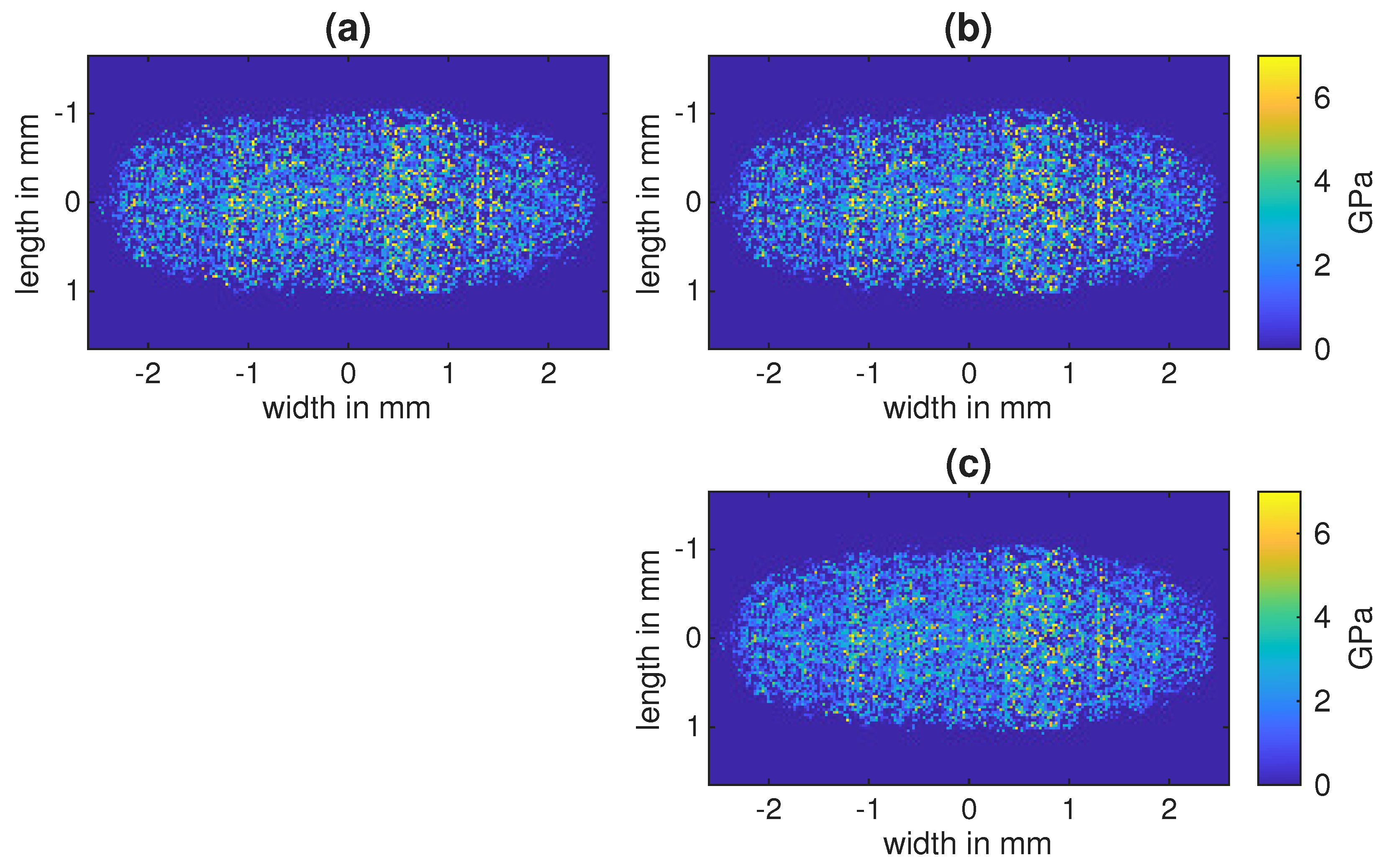 Figure 10) allowed a realistic representation of the pressure distribution in the contact. Additionally, the numerical treatment of surface summation (i.e., the direct addition of measured profiles from both contacting rings without realignment) was considered, particularly at the start of the experiment, to take into account the arbitrary nature of ring alignment in the experimental setup. Nonetheless, several limitations were identified, and some of these limitations were addressed, leading to an updated model.