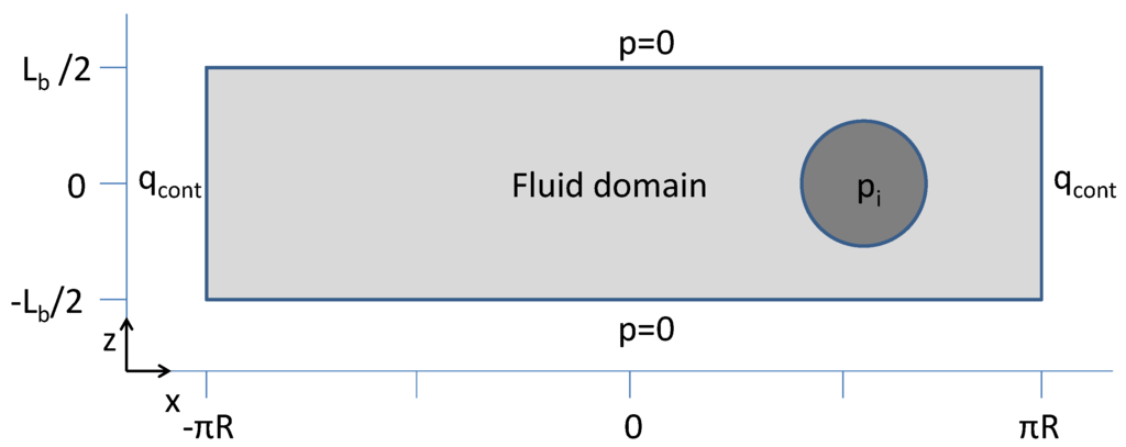 - the pressure distribution is dominated by the hydrodynamic pressure buildup; therefore, the hydrostatic pressure contribution of the supply is neglected.