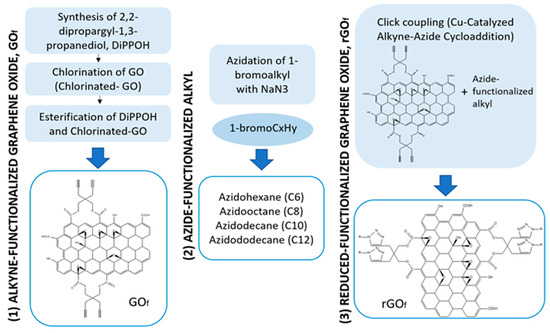 - Wang, H.-X.; Zhou, K.-G.; Xie, Y.-L.; Zeng, J.; Chai, N.-N.; Li, J.; Zhang, H.-L. Photoactive graphene sheets prepared by “click” chemistry. Chem. Commun. 2011, 47, 5747–5749. [Google Scholar] [CrossRef] [PubMed]