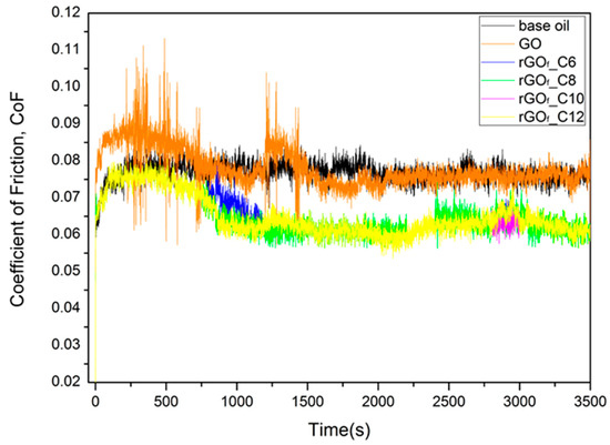 | Base oil with rGOf_C10 | 0.065 | −15.78 |