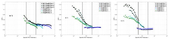 - Gonçalves, D.; Graça, B.; Campos, A.; Seabra, J. Film thickness and friction behaviour of thermally aged lubricating greases. Tribol. Int. 2016, 100, 231–241. [Google Scholar] [CrossRef]