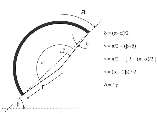 Subtended articular arc (a) (coverage angle) of a metal-on-metal articulation.