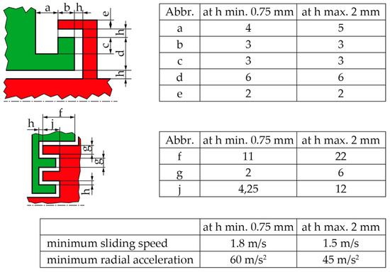 - Stanger, N. Non-Contacting Sealing Systems for Small Installation Space. Ph.D. Thesis, Universität Stuttgart, Stuttgart, Germany, 1995; p. 111. (In German). [Google Scholar]