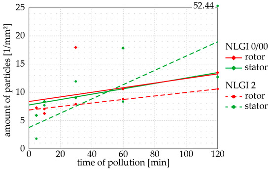 - Contamination of the sealing system by spraying particles directly on entrance area of the sealing system normally for 10 min (other duration are given in the figures); shaft speed normally is n = 500 rpm;