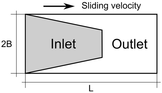 In a recent paper by one of us, it has been theoretically postulated that the existence of particularly effective texture geometries, which maximize the load supported by a single thrust bearing pad of finite width 2B and length L (schematic representation shown in Figure 1), are subjected to a partial surface texturing [22]. The textured surface consists of an array of small-scale defects, which include different textured geometries like circular, elliptical dimples, and/or micro-grooves. We assume that the sliding contact takes place between the partially textured and plain parallel surfaces, under the iso-viscous rigid lubrication regime and isothermal conditions. An analytical model has been developed under these conditions, which accurately describes the texture hydrodynamics [20]. The theoretical model allows for the calculation of the average flow dynamics at the contact interface, in terms of the flow and the shear stress tensorial factors, provided that cavitation is absent or it has a negligible effect (as is usually the case of partial surface textures).