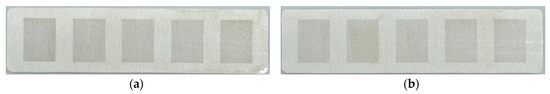 For all other micro-ridged LSR pads (structure 1: remaining 3 pads; structure 2: all 5 pads), they were all perfectly replicated from the injection molds and had only defect-free micro-structured surfaces, as shown in Figure 8b,c. Furthermore, Table 6 lists results of the measurements of the structure dimensions on LSR pads. A comparison of these results with results obtained from the injection molds (Table 5) shows that the degree of replication of micro-grooved structures from laser-structured injection molds onto LSR pads is relatively high, in which one may observe that the obtained structure dimensions are almost equal to the desired dimensions. From these results obtained from the characterization of the micro-ridged LSR pads, it is clear that the production of defect-free pads having the desired dimensions using laser-structured injection molds is realizable. However, for deep structures such as structure 1 (depth of 50 μm or more), the production of defect-free pads is more challenging and would need further optimization of the molding process, which is not part of the present study. Finally, it is worth noting here that for the friction evaluation (next section) of pads structured with structure 1, only defect-free LSR pads were used.