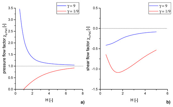 For visualization, the flow factors are plotted against H in Figure 2. Notice that for a pressure flow factor and for a shear flow factor the surface topography has no influence on the volume flow rate.