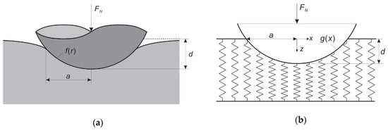 - Popov, V.L. Contact Mechanics and Friction, Physical Principles and Applications, 2nd ed.; Springer-Verlag: Berlin, Germany, 2017; pp. 283–289. [Google Scholar]