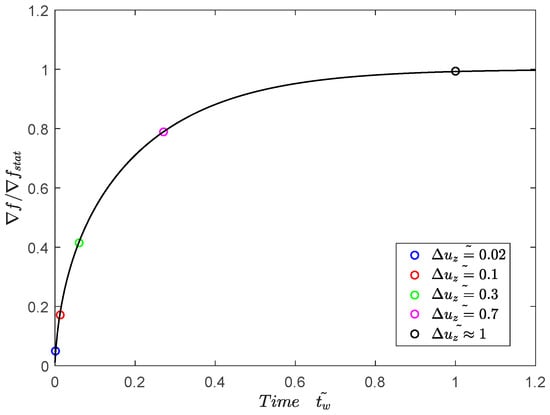 The constant stress level of rings with the higher wear coefficient (in this case and ) is reached significantly faster. Therefore, the time needed to reach the limiting profile is mostly dependent on the lowest wear coefficient.
