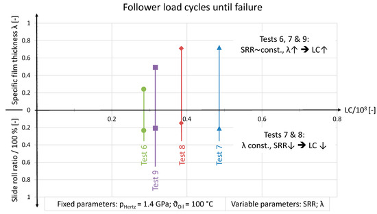 As illustrated in Figure 5, a decrease in the SRR at a constant λ-value, leads to decrease in run time until failure. This observation is against the expectations and the findings on a four-disc test rig, in which the author observed a reversed effect [10]. It should be noted, that the results are yet to be confirmed statistically and further studies are needed to validate this initial observation.