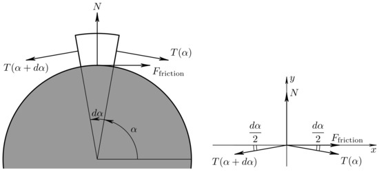 To do this consider equilibrium of a small element of the rope on the cylinder. Let the tension force T be a function of . The total force acting on the element is depicted in Figure 3. Projecting on the axes x and y we obtain the differentials