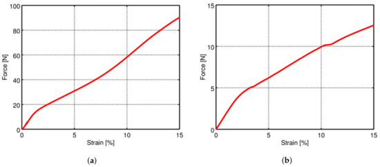 Force-strain measurements. (a) Elongation yarn; (b) Shutting yarn.