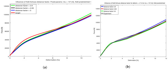 Influence of thickness-factor. (a) Effective stretching behavior; (b) Adopted distance-factor.