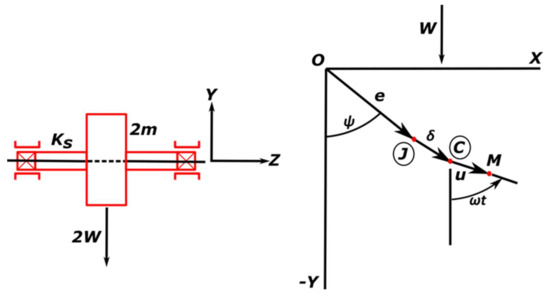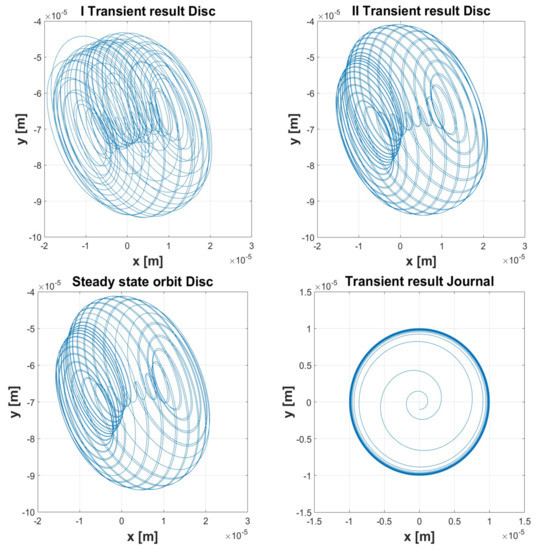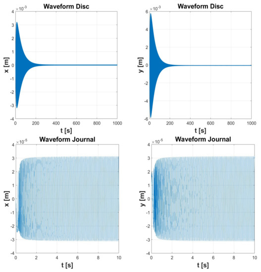 in which Equations (10) and (11) have been obtained by imposing the dynamic balance of the centre of the disc C. Equations (12) and (13) have been derived from the dynamic balance of the centre of the Journal J.