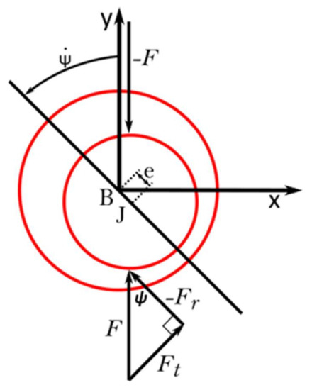 The expression in polar coordinates (ε, ψ) is very compact, but it is convenient, in order to define the equation of motion in a Cartesian system as shown in Figure 2, in which the centre of the coordinates is the centre of the bearing.
