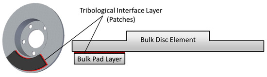 These tools are capable of performing detailed simulations of complex material mixtures and have been validated through a series of specialized measurements. They have aided in gaining insights into the dependencies of the patches’ dynamics, particularly with regard to surface pressure, sliding speed, and temperature. The grid-based cellular automaton introduced a wear particle density flow, modeled using the local contact scenario for generating patch growth. The patch growth process was formulated based on the dynamics of macroscopic bulk goods. While information from this automaton corresponds very well with the local friction behavior, the local heat generation, the local wear behavior, and the distribution of patch areas, the individual patch size was only correct in a statistical sense. In addition, global effects on the brake pad, such as those related to thermoelastic instabilities [11], could not be represented with these tools. Due to the numerical complexity, the grid-based automaton cannot currently be extended to simulate the entire contact area between a brake pad and disc.
