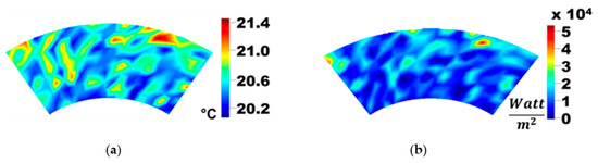 Abstract Cellular Automaton example simulation results: (a) temperature distribution; (b) friction power density distribution [16].