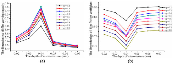 - The oil film carrying capacity, friction force and offset load torque reached their minimum when the depth was 0.07 mm. The oil film friction coefficient reached its maximum at this point.