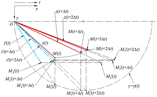 At a consecutive time interval Δt, in the first step of the abovementioned motion, point M moves to the position M1’(t), which is determined by the following coordinates: