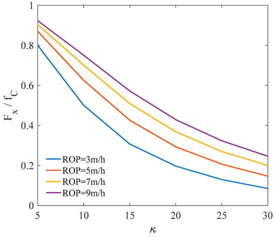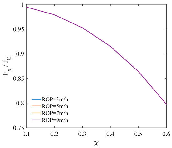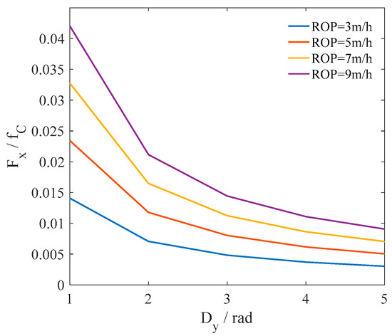 The average axial friction forces were also obtained by simulation. The results are presented in Figure 25. The ratio between the average axial friction force and the Coulomb friction decreased with the increase of the amplitude of the rotation. A greater ROP led to a greater axial friction force under the condition of the same rotation amplitude. The friction reduction effect was more obvious than that of longitudinal vibration and torsional vibration in the range of the field parameters.