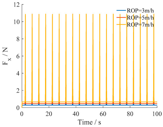 Axial friction force of rocking motion with different ROPs.