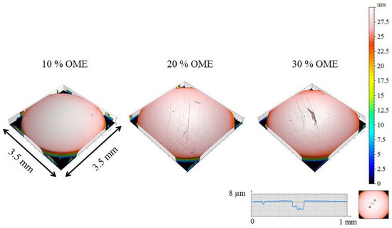 To study the influence of OME on friction, tribometer tests were carried out at different OME concentrations (Figure 2).