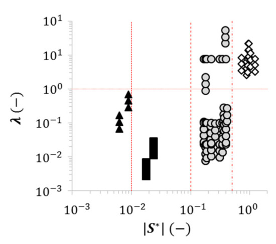 The specific film thickness () is a dimensionless parameter that has been used to characterize the lubrication regime of contacting surfaces in relative motion [4,5]. This parameter is also referred to as the lambda parameter or the lubricant film parameter. The specific film thickness is defined as