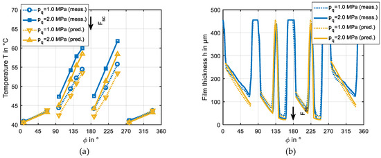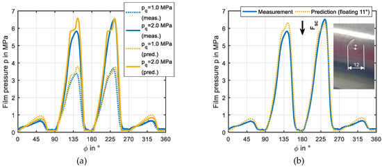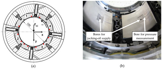 - Buchhorn, N.; Kukla, S.; Bender, B.; Neumann, M. Tilting-pad journal bearing in hybrid operation: A numerical and experimental investigation. In Proceedings of the 63rd ASME Turbo Expo, Oslo, Norway, 11–15 June 2018. [Google Scholar]